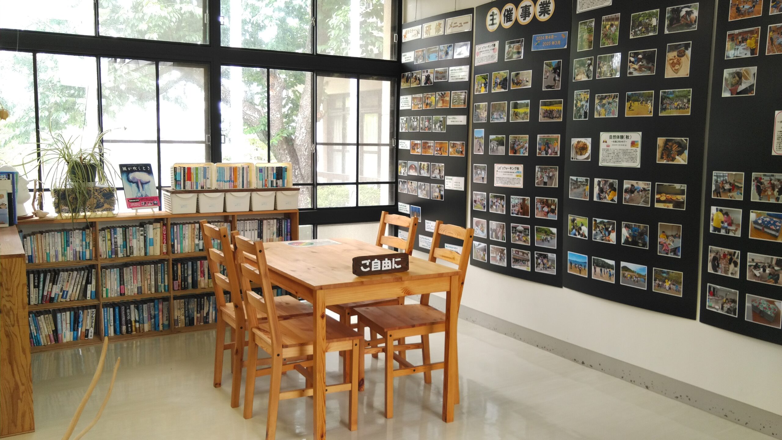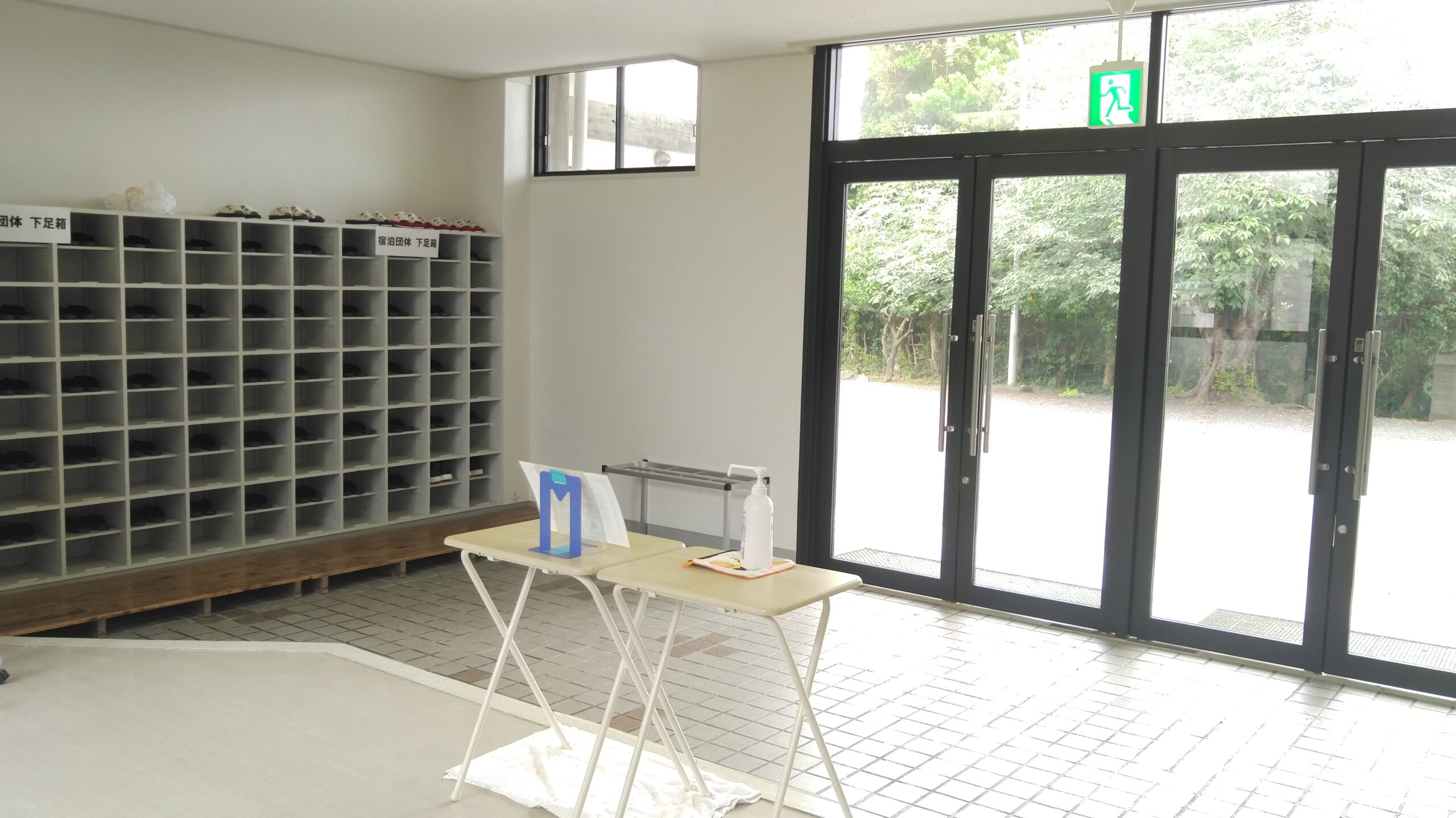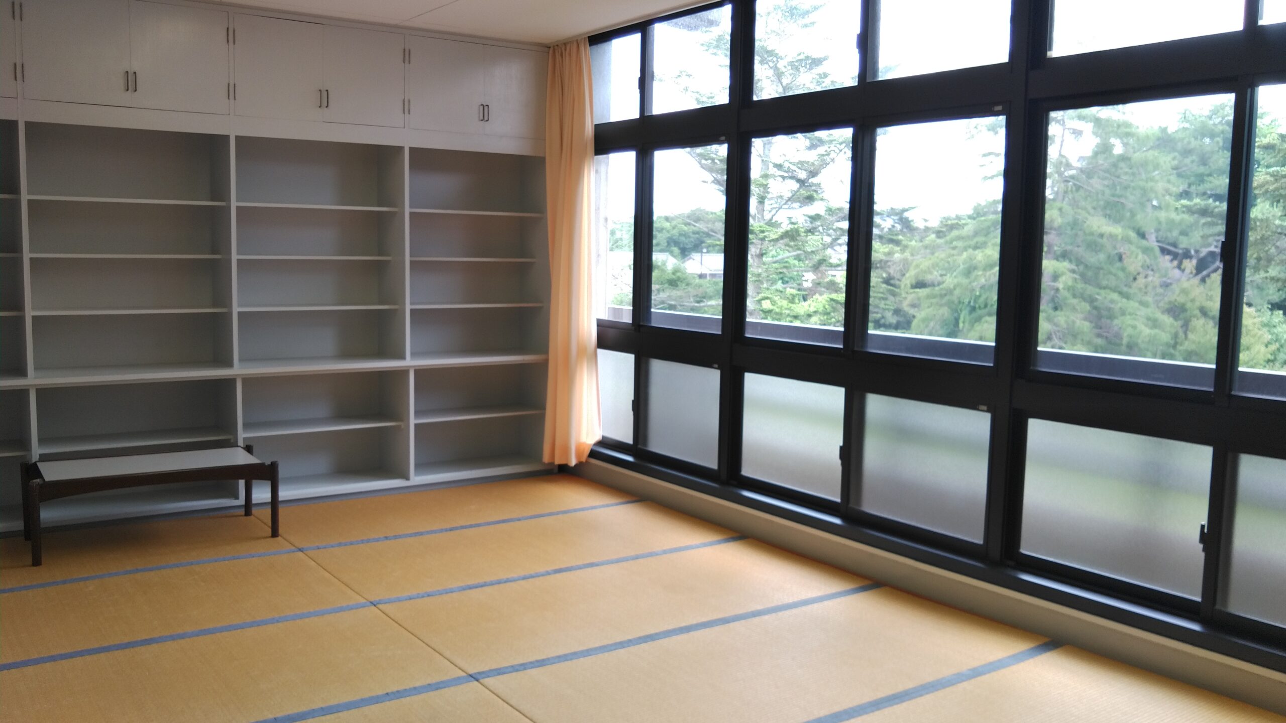玄関前のエントランスでは、ご利用されたお客様がくつろいで頂けるスペースとなっており、今まで萩セミナーハウスが主催してきた催しものの一覧を観覧できます。